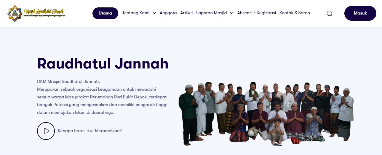 I once received a project from the Raudhatul Jannah Foundation to create a web-based DKM application for the Raudhatul Jannah Mosque. This application facilitates the mosque's DKM administrators in managing all religious-related data and serves as an information platform for spreading religious messages to the surrounding community within the mosque's vicinity.